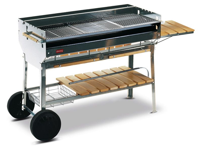 Толщина металла позволяет без проблем использовать в качестве топлива дрова. Комплектуется двумя решетками и кочергой. Конструкция барбекю позволяет готовить блюда традиционно на шампурах (шашлык), края которых располагаются специальных металлических пластинах с деревянными ручками или же на решетке. Возможно одновременное комбинированное приготовление блюд – на решетке и на шампурах. Есть отсек для дров, поддон для пепла, нижняя корзина для инструментов, боковая и нижняя полки для продуктов и специй. С помощью двух колес удобно перемещается в необходимое место Примечание! На фото товара изображены аксессуары, которые не входят в стандартную комплектацию товара и приобретаются отдельно у производителя: кочерга, решетки двухсторонние с деревянными ручками. |