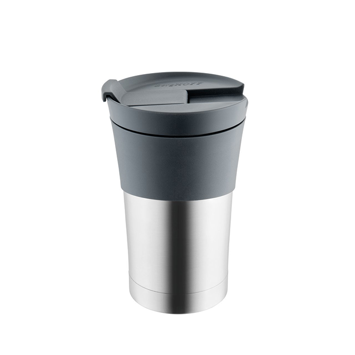 Дорожная термокружка Berghoff, 0.33 л. изготовлена из нержавеющей стали 18/10. Благодаря двойным стенкам долго удерживает температуру напитка. Крышка изготовлена из качественного пластика, без вредных примесей. Удобна в использовании.