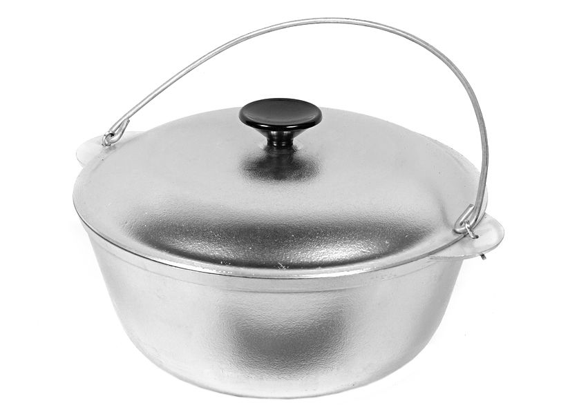 Снабжен крышкой и металлической дужкой. Незаменим при приготовлении пищи в походных условиях, при отдыхе на природе.