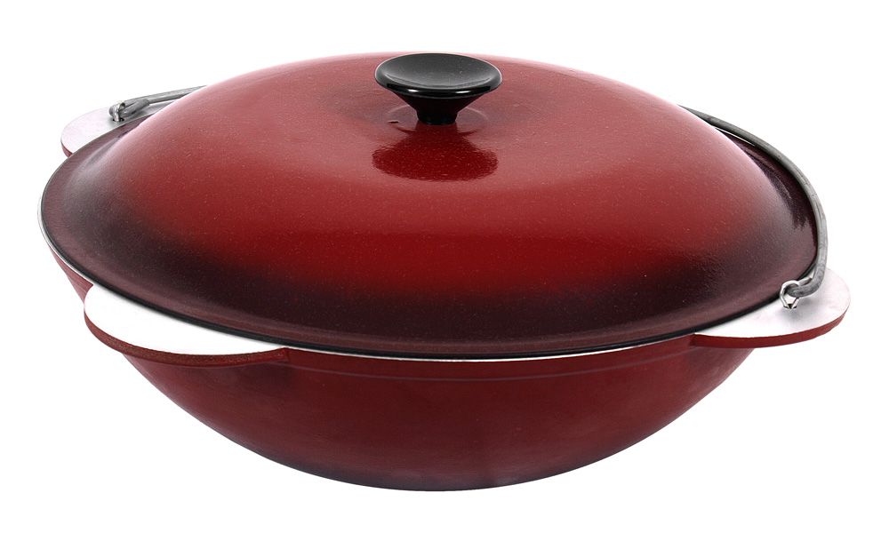 Снабжен крышкой и металлической дужкой. Имеет наружное стеклоэмалевое термостойкое покрытие (до 600°С). Незаменим при приготовлении пищи в походных условиях, при отдыхе на природе. |