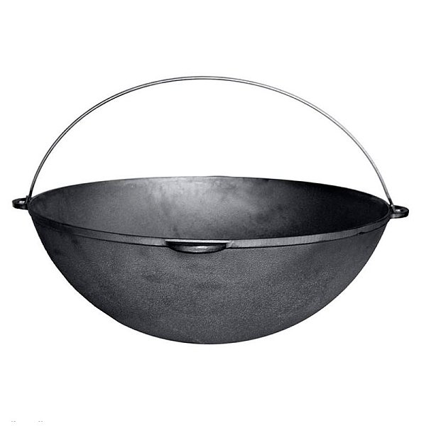 Казан татарский чугунный диаметром 58 см. и объемом 32 л. Казан изготовлен из высококачественного литого чугуна, благодаря чему он обеспечивает абсолютно равномерный нагрев вашего блюда со всех сторон и надолго сохраняет тепло. Укомплектован легкой и удобной алюминиевой крышкой. Благодаря удобному подвесу идеально подходит для готовки блюд на мангале или костре.
