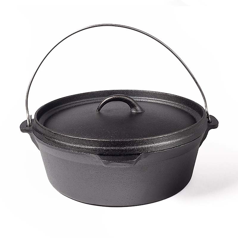 Казан має ідально рівне дно, завдяки чому його можна використовувати на звичайній плиті. Також укомплектований міцною дужкою для використання на тринозі над багаттям. В комплект входить кришка, яка має високий борт, що дозволяє використовувати її як повноцінну чавунну сковороду. В ній Ви зможете посмажити картоплю та інші овочі, а також м'со, рибу, гриби. Перевернувши кришку Ви отримаєте чудову жоровню з ідеальнною поверхнею.