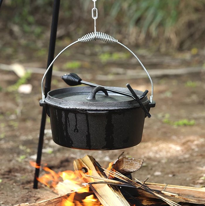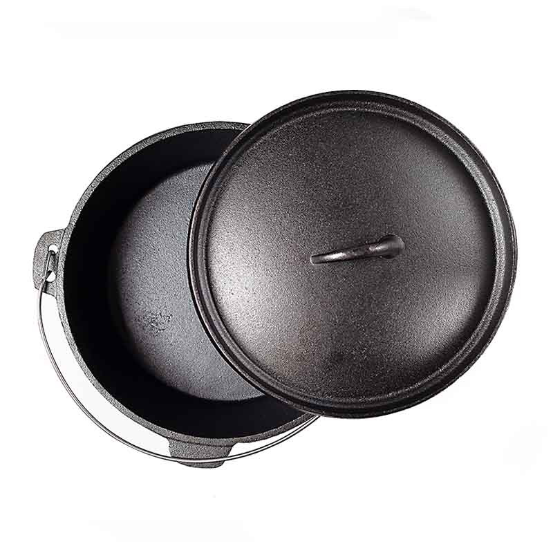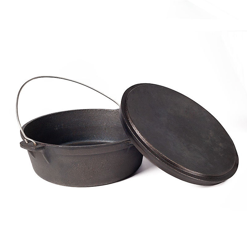 Казан має ідально рівне дно, завдяки чому його можна використовувати на звичайній плиті. Також укомплектований міцною дужкою для використання на тринозі над багаттям. В комплект входить кришка, яка має високий борт, що дозволяє використовувати її як повноцінну чавунну сковороду. В ній Ви зможете посмажити картоплю та інші овочі, а також м'со, рибу, гриби. Перевернувши кришку Ви отримаєте чудову жоровню з ідеальнною поверхнею.