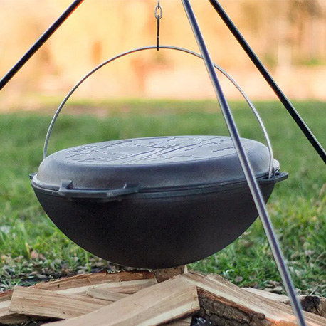 Казан просто создан для приготовления на открытом огне на охоте или рыбалке, также он идеально подходит для отдыха у костра на природе, даче или во дворе загородного дома. Блюда в казане по-особенному вкусны и ароматны.