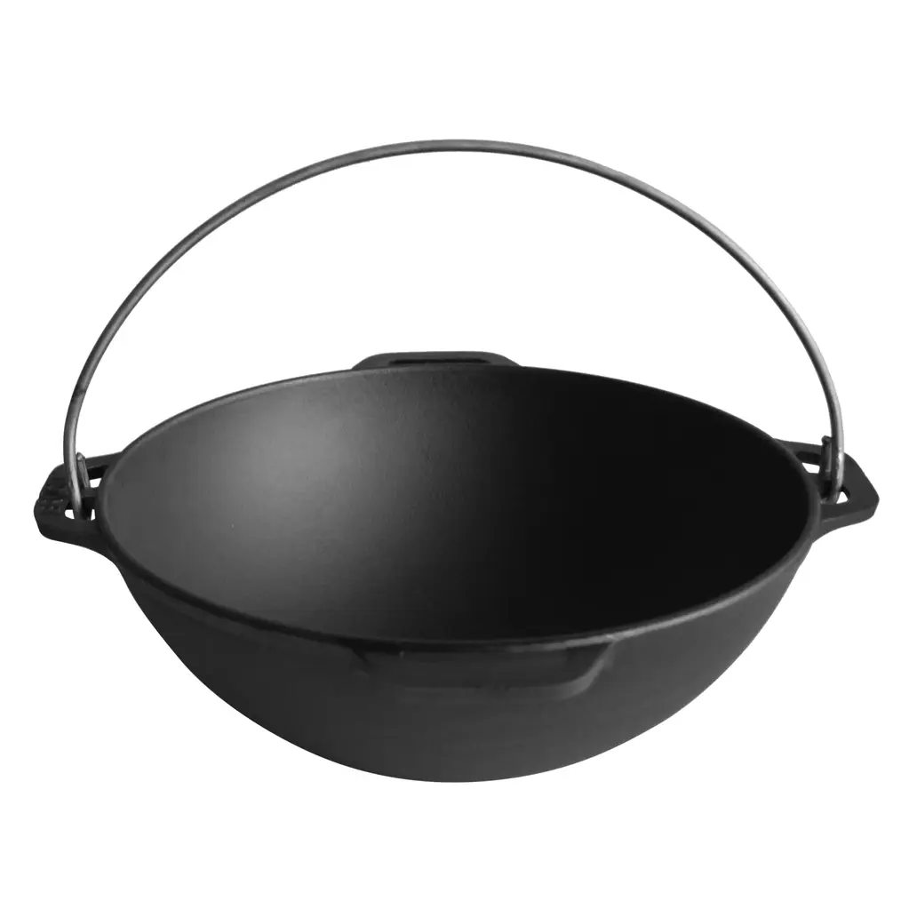 Татарский казан отлично подходит для приготовления блюд азиатской кухни: плов, кебаб и лагман будут удивительно сочными и ароматными. Стенки и дно из толстого чугуна аккумулируют тепловую энергию и позволяют долго тушить и томить блюда на самом малом огне, согревая их теплом самого казана. Полусферическое дно обеспечивает равномерный нагрев приготавливаемого блюда.