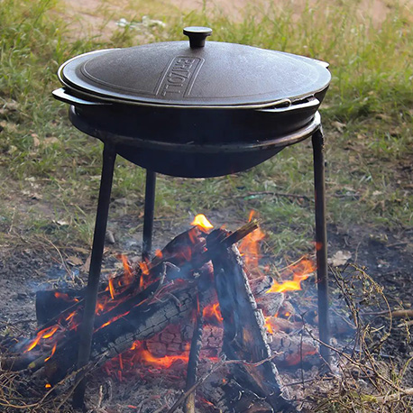 Казан просто создан для приготовления на открытом огне на охоте или рыбалке, также он идеально подходит для отдыха у костра на природе, даче или во дворе загородного дома. Блюда в казане по-особенному вкусны и ароматны.