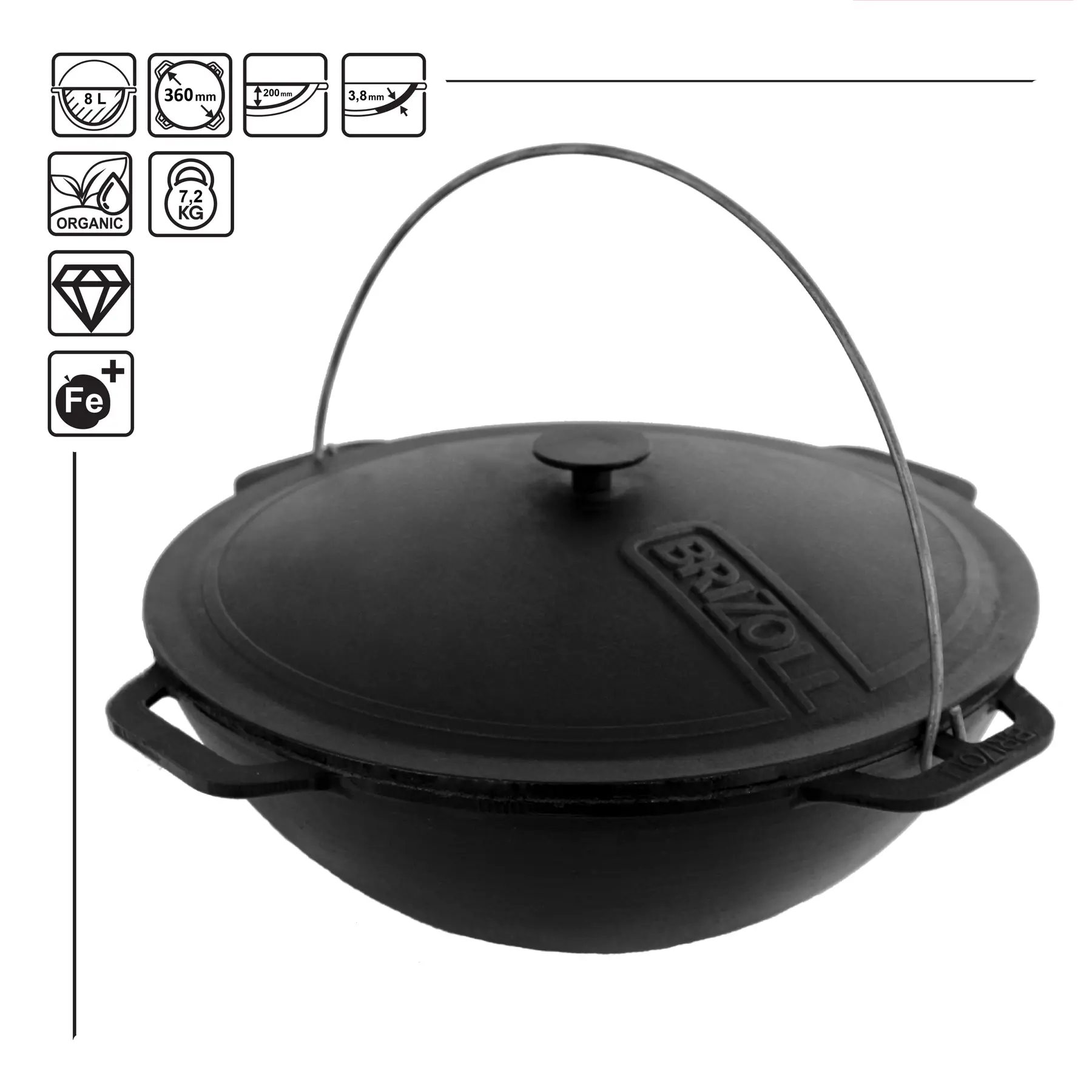 Казан чугунный татарский Brizoll 8 л. с крышкой
