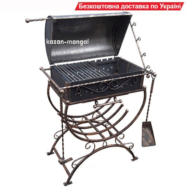 Мангал-гриль кованый "Хортиця" виготовлений з листової сталі товщиною 3 мм., що дозволяє впевнено використовувати не тільки вугілля, але і дрова щільних листяних порід - мангал не поведе і він збереже свою форму навіть після тривалого використання.