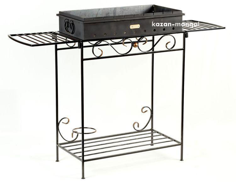 Мангал кованый изготовлен из листовой стали толщиной 2 мм. шириной 60 и глубиной 30 см. Жаровня имеет съёмную конструкцию, благодаря чему значительно облегчается процесс переноски, установки, а также чистки мангала. Кроме того, жаровню можно использовать, как мобильный, легко перевозимый мангал, удобно брать с собой на дачу, пикник, рыбалку.