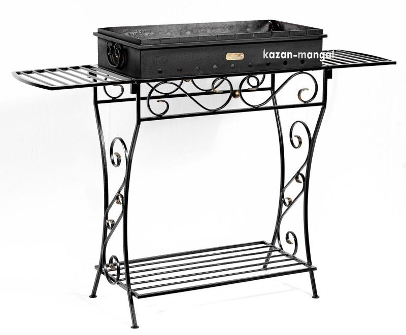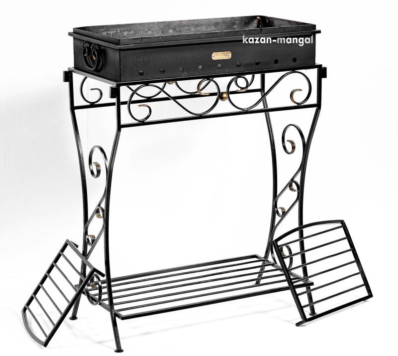 Мангал кованый изготовлен из листовой стали толщиной 4 мм. шириной 60 и глубиной 33 см. Жаровня имеет съёмную конструкцию, благодаря чему значительно облегчается процесс переноски, установки, а также чистки мангала. Кроме того, жаровню можно использовать, как мобильный, легко перевозимый мангал, удобно брать с собой на дачу, пикник, рыбалку.