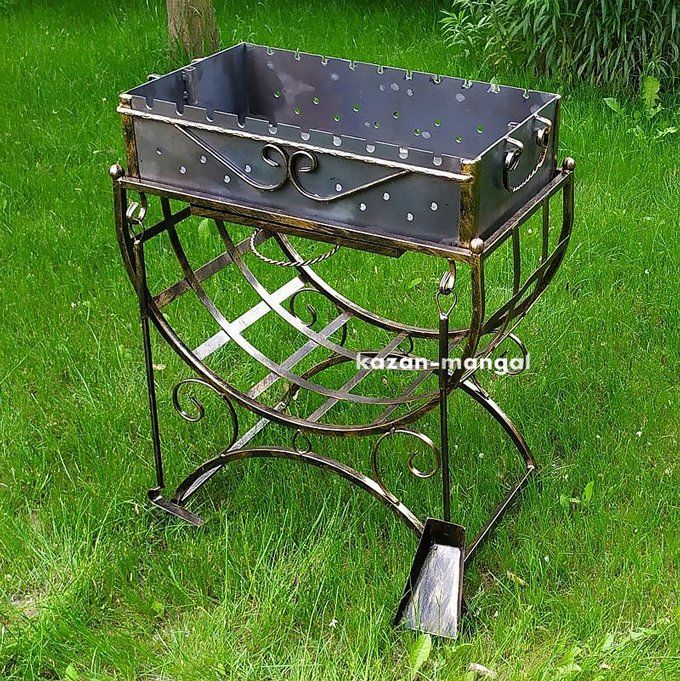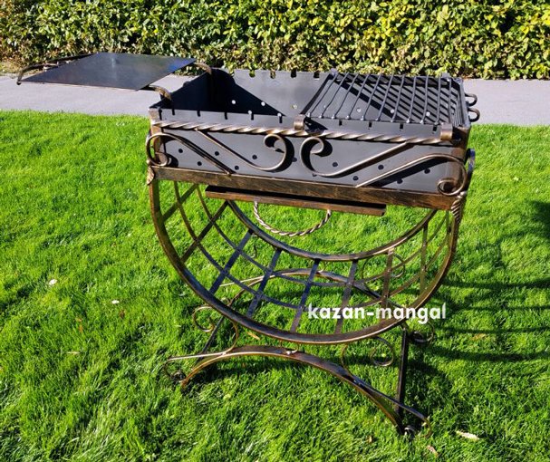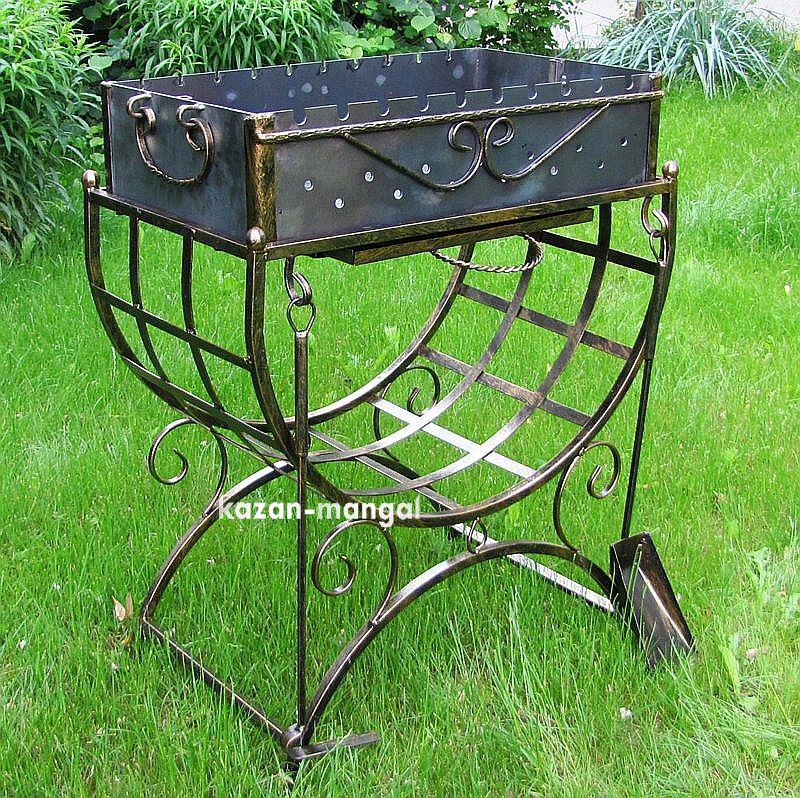 Жаровня має з'ємну конструкцію, завдяки чому значно полегшується процес переноски, встановлення, а також очищення мангалу. В нижній частині знаходяться отвори для забезпечення гарного протягу. Дровниця виготовлена з міцної металевої полоси, що надає їй додаткову жорсткість та забезпечує можливість зберігання будь-якого об'єму дров.