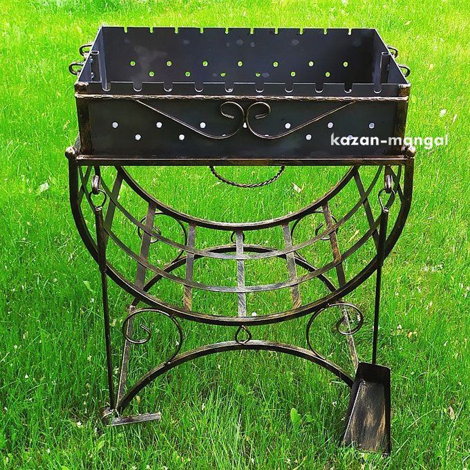 Вирахувана експериментальним шляхом глибина жаровні в 15 см. дозволяє приготувати соковитий шашлик, використовуючи мінімум дров або вігулля. Додатково мангал може бути укомплектований кронштейном для казану, боковими столиками, решіткою-гриль, кочергою та совком для догляду за мангалом.