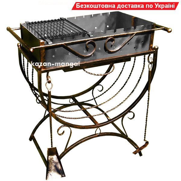 Жаровня має з'ємну конструкцію, завдяки чому значно полегшується процес переноски, встановлення, а також очищення мангалу. Ручки жаровні виконані у вигляді цільного силового каркасу. В нижній частині знаходяться отвори для забезпечення гарного протягу. Станина виготовлена з кручених елементів, что робить мангал міцним та витонченим одночасно.