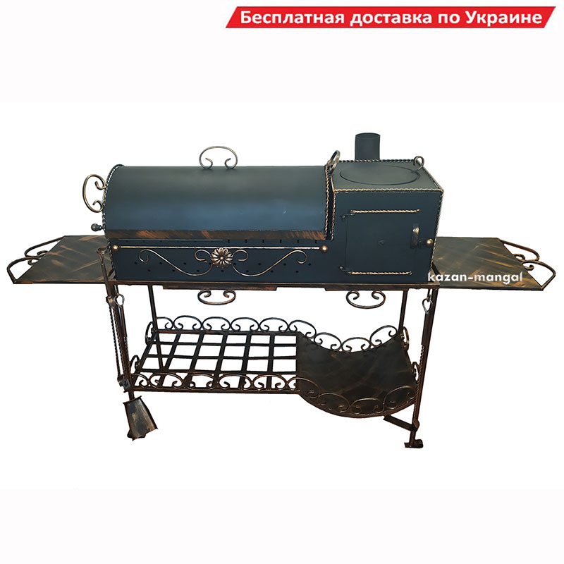 Вирахувана експериментальним шляхом глибина жаровні в 15 см. дозволяє приготувати соковитий шашлик, використовуючи мінімум дров або вігулля. Додатково мангал може бути укомплектований кронштейном для казану, боковими столиками, решіткою-гриль, кочергою та совком для догляду за мангалом.