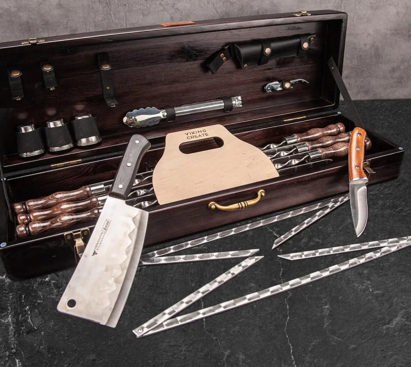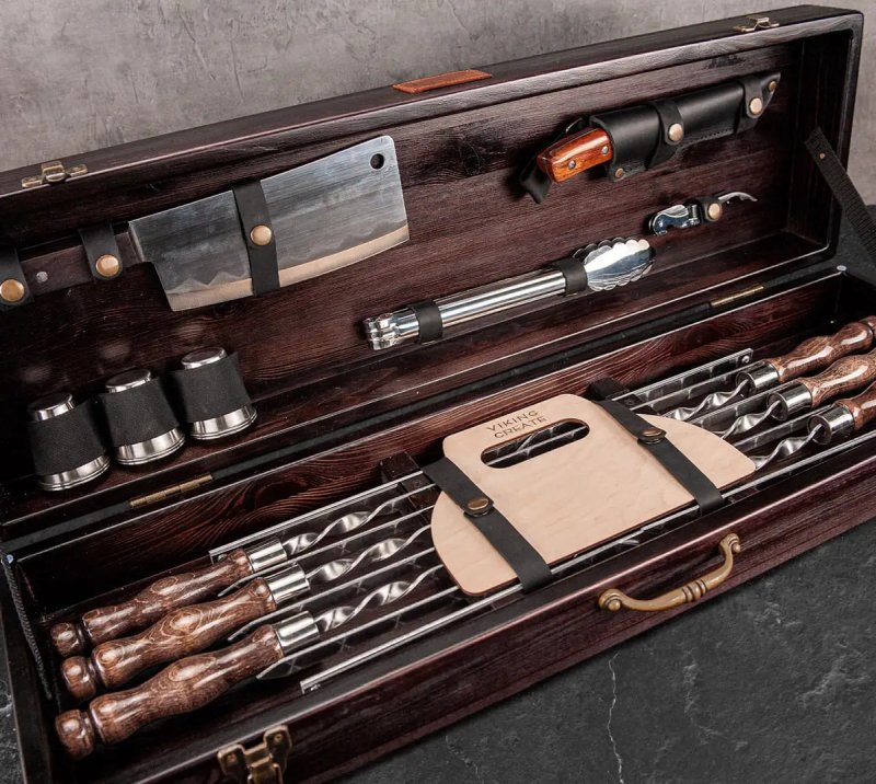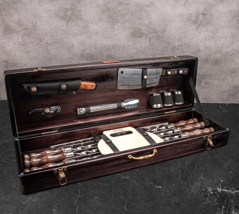 Набор рассчитан на 6 персон и включает в себя все необходимое для приготовления любимых блюд на мангале. Упакован в подарочный кейс из натурального дерева. Подарочный набор шампуров в кейсе "Сигурд" станет прекрасным и эффектным подарком для своего обладателя.