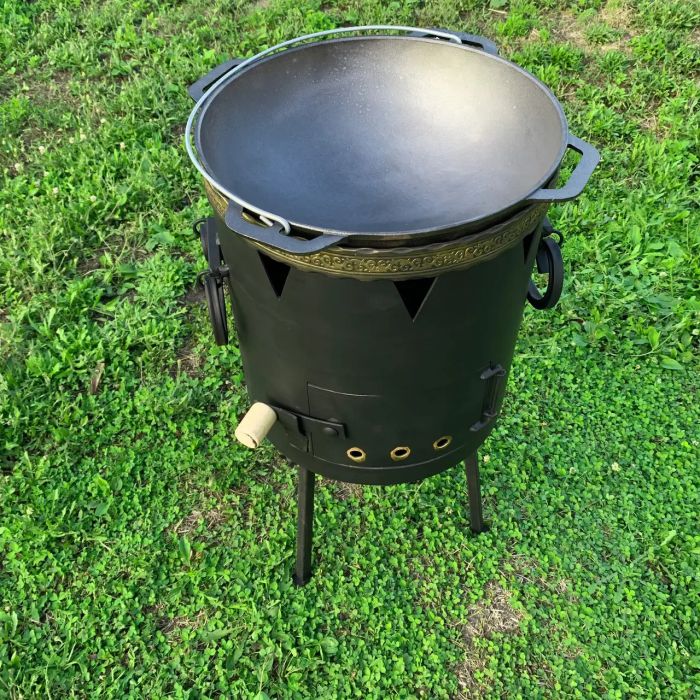 Печь для казана 12-18 л. артикул 40044. Имеет диаметр 40 см., идеально подходит для казана объемом 12, 15, 18 литров. Изготовлена из металла толщиной 3 мм., благодаря чему имеет очень большой ресурс - печь не поведет, а стенки не прогорят. Вы можете смело использовать дрова прочных лиственных пород, а также древесный уголь. Прочные ручки по бокам позволят с легкостью установить печку на подходящее место на вашем участке.