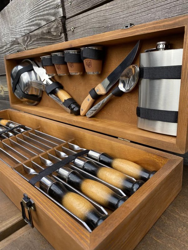 Набор включает в себя все необходимое для приготовления любимых блюд на мангале. Упакован в подарочный кейс из натурального дерева. Подарочный набор шампуров в кейсе "Рысь" станет прекрасным и эффектным подарком для своего обладателя.