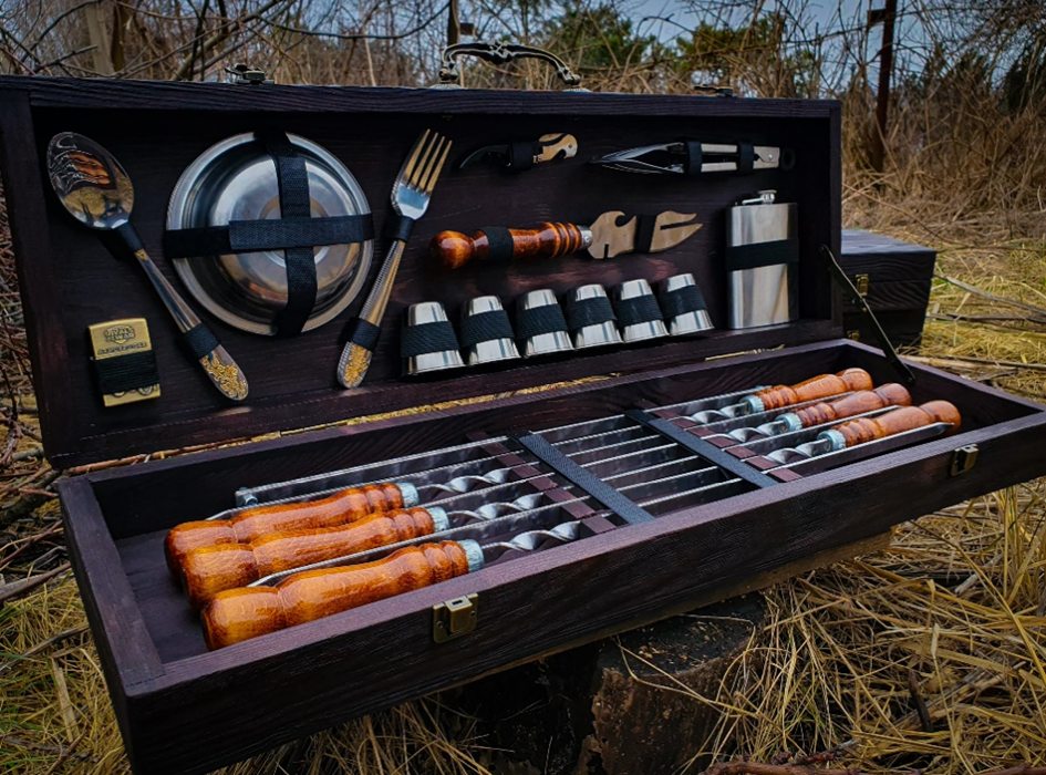 Набор рассчитан на 6 персон, включает в себя все необходимое для комфортного отдыха на природе. Упакован в подарочный кейс из натурального дерева. Подарочный набор шампуров в кейсе "Туристический" станет прекрасным и эффектным подарком для своего обладателя.