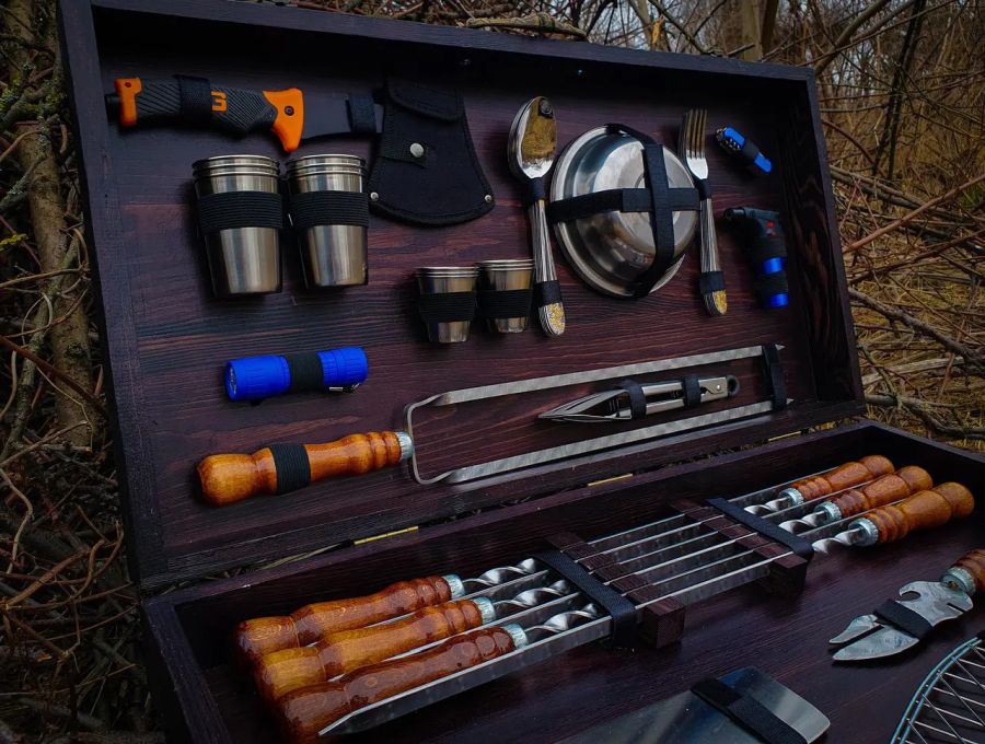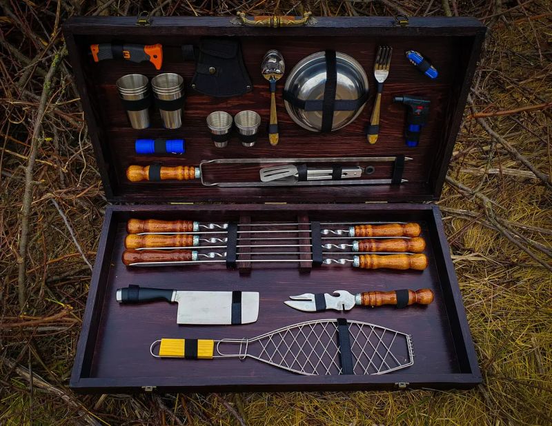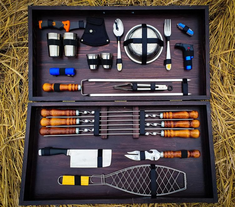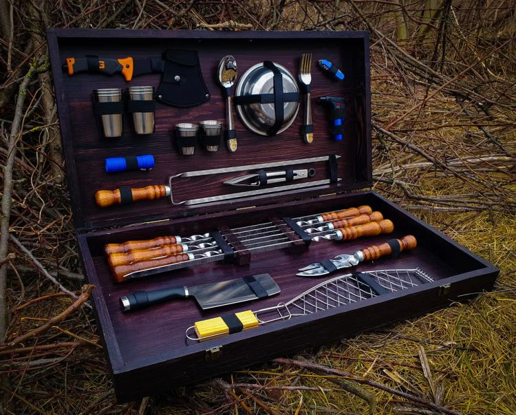Набір розрахований на 6 персон, включає все необхідне для комфортного відпочинку на природі. Запакований у подарунковий кейс із натурального дерева, завдяки чому подарунковий набір шампурів у кейсі "Отаман" стане чудовим та ефектним подарунком для свого власника.