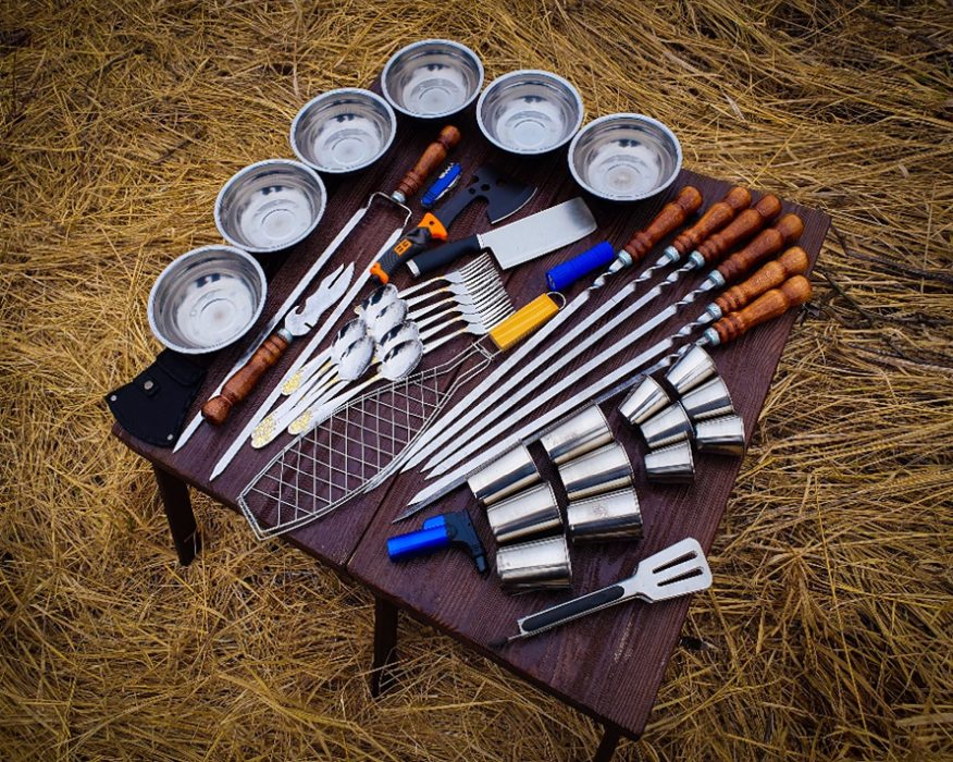 Шампури виконані зі сталі товщиною 3 мм, мають великий запас міцності, не гнуться і витримують будь-які порції м'яса, мають довжину в 64 см., чого достатньо для найбільшого мангалу. Рукоятки інструментів виготовлені із натурального дерева, працювати ними зручно та приємно.