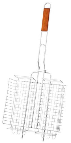 Деревянная ручка удобна в использовании. Конструкция решетки позволяет готовить блюда из мяса, рыбы, овощей и др. на твердом топливе (углях). |