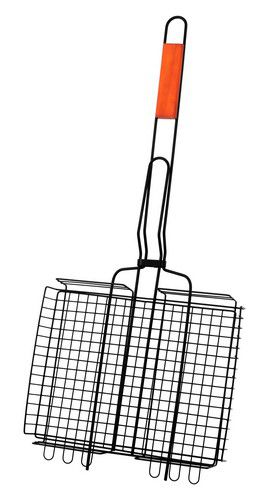Деревянная ручка удобна в использовании. Конструкция решетки позволяет готовить блюда из мяса, рыбы, овощей и др. на твердом топливе (углях). |