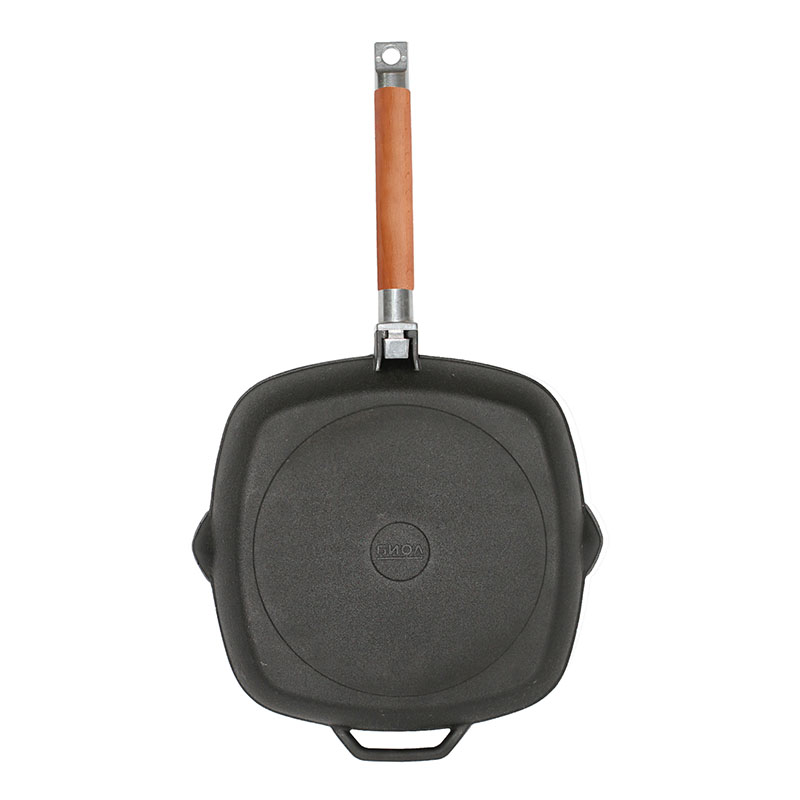 Сковорода-гриль размером 28 см. Изготовлена из высококачественного литого чугуна, благодаря чему обеспечивает равномерный нагрев и надолго сохраняет тепло. Подходит как для использования на костре, так и для всех типов плит. Укомплектована съемной ручкой из натурального дерева. Упакована в фирменную подарочную упаковку.