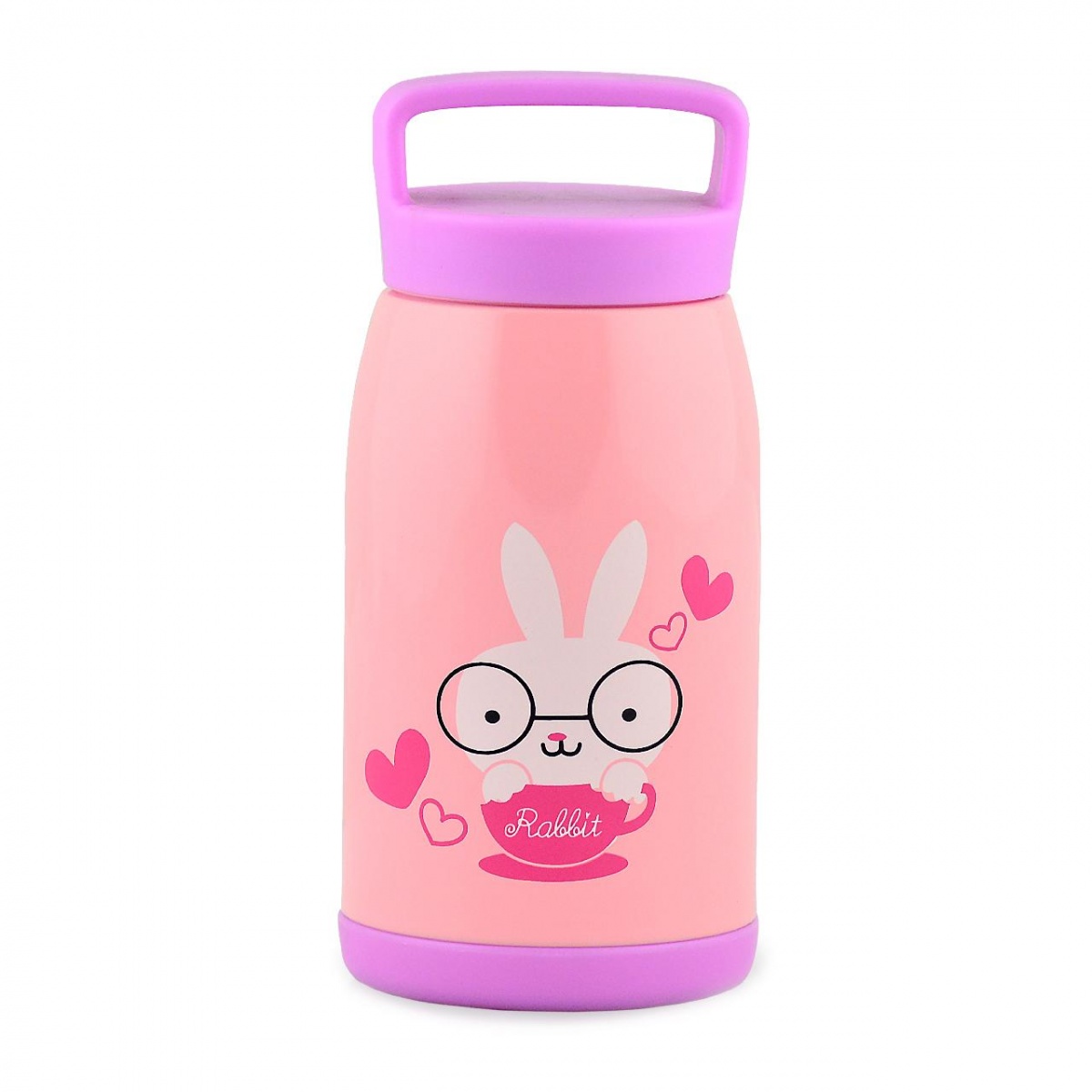 Термос FISSMAN Кролик артикул VA-9662.260 объемом 0,26 л. И колба, и корпус термоса изготовлены из пищевой нержавеющей стали 18/10. Такая сталь экологически безопасна, она не окисляется, не передает продуктам металлический вкус или запах. Термос из нержавеющей стали надежен и долговечен, прекрасно подходит для личного использования ребенком. Благодаря наличию вакуума между стенками термоса, обеспечивается продолжительная многочасовая термоизоляция вашего напитка. Выполнен в розовом цвете с изображением забавного кролика.