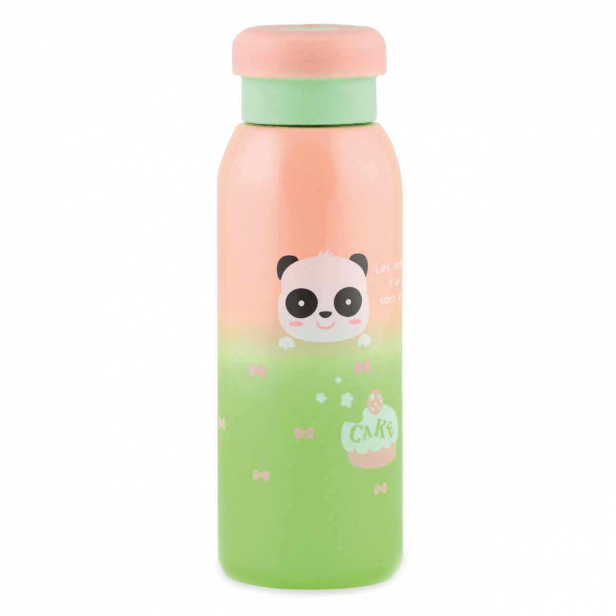 Термос FISSMAN Панда артикул VA-9700.450 объемом 0,45 л. И колба, и корпус термоса изготовлены из пищевой нержавеющей стали 18/10. Такая сталь экологически безопасна, она не окисляется, не передает продуктам металлический вкус или запах. Термос из нержавеющей стали надежен и долговечен, прекрасно подходит для личного использования ребенком. Благодаря наличию вакуума между стенками термоса, обеспечивается продолжительная многочасовая термоизоляция вашего напитка. Выполнен в зелено-розовом цвете с изображением забавной пандочки.