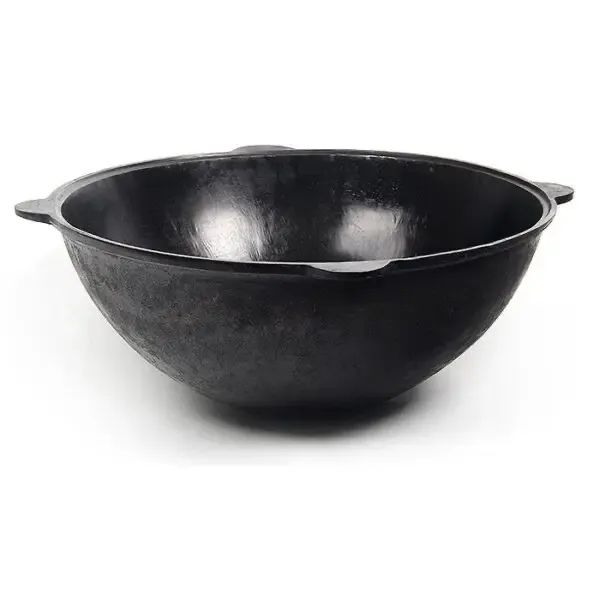 Казан имеет 4 литые ручки для удобного хвата и надежной фиксации в подставке или печке. Наманганский казан создан для приготовления блюд именно азиатской кухни: плов, кебаб и лагман будут удивительно сочными и ароматными. Стенки и дно из толстого чугуна аккумулируют тепловую энергию и позволяют долго тушить и томить блюда на самом малом огне, согревая их теплом самого казана. Полусферическое дно обеспечивает равномерный нагрев приготавливаемого блюда.