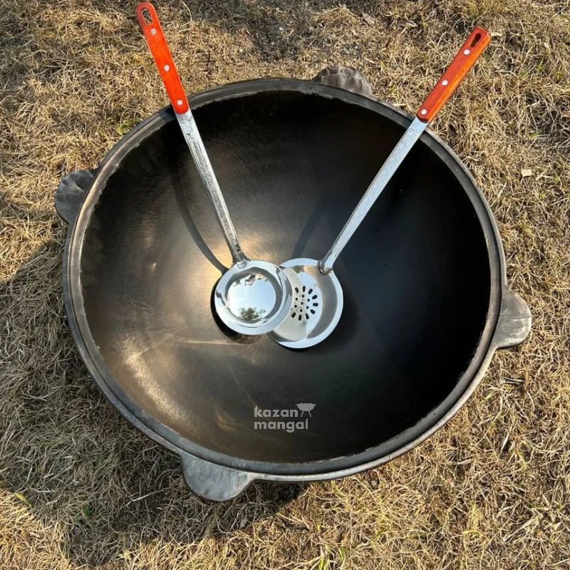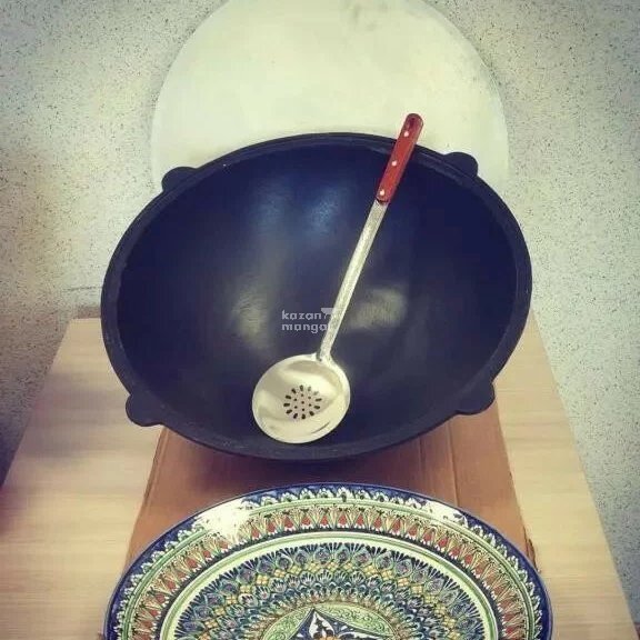 Казан имеет 4 литые ручки для удобного хвата и надежной фиксации в подставке или печке. Наманганский казан создан для приготовления блюд именно азиатской кухни: плов, кебаб и лагман будут удивительно сочными и ароматными. Стенки и дно из толстого чугуна аккумулируют тепловую энергию и позволяют долго тушить и томить блюда на самом малом огне, согревая их теплом самого казана. Полусферическое дно обеспечивает равномерный нагрев приготавливаемого блюда.