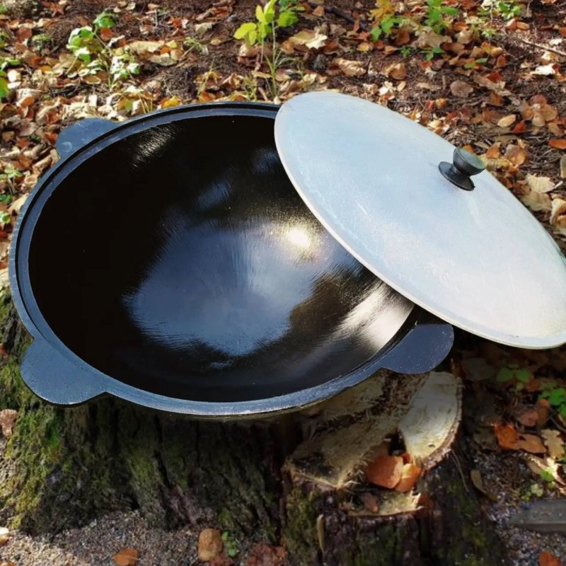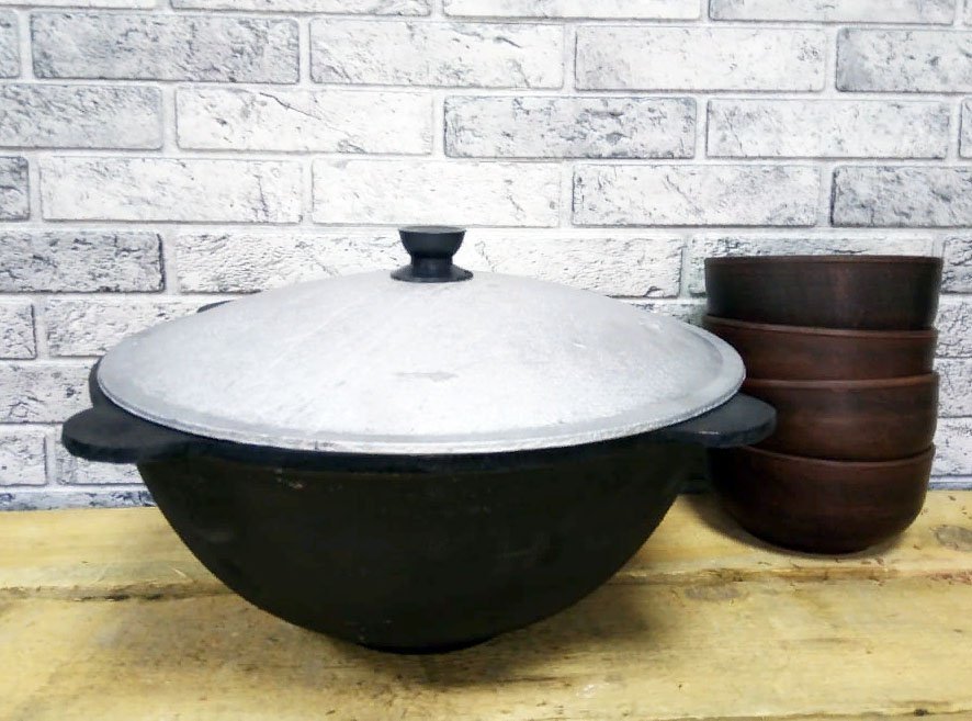 Казан укомплектован легкой и удобной крышкой из нержавеющей стали. Имеет 4 литые ручки для удобного хвата и надежной фиксации в подставке или печке. Наманганский казан создан для приготовления блюд азиатской кухни: плов, кебаб и лагман будут удивительно сочными и ароматными. Стенки и дно из толстого чугуна аккумулируют тепловую энергию и позволяют долго тушить и томить блюда на самом малом огне, согревая их теплом самого казана. Полусферическое дно обеспечивает равномерный нагрев приготавливаемого блюда.